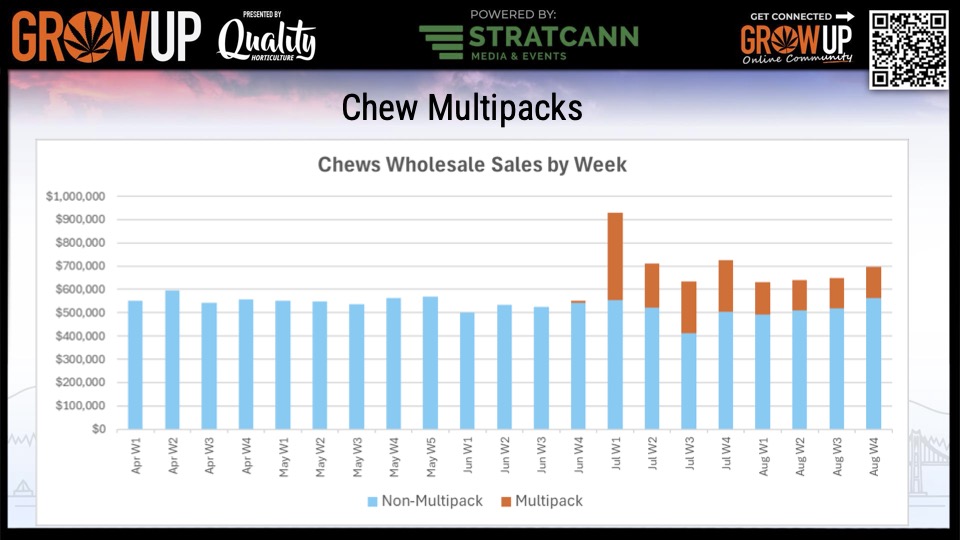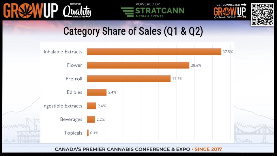 Inhalable extracts continue to lead category share, representing 37.5% of the wholesale market, followed by Flower (28.6%) and Pre-rolls (23.3%).