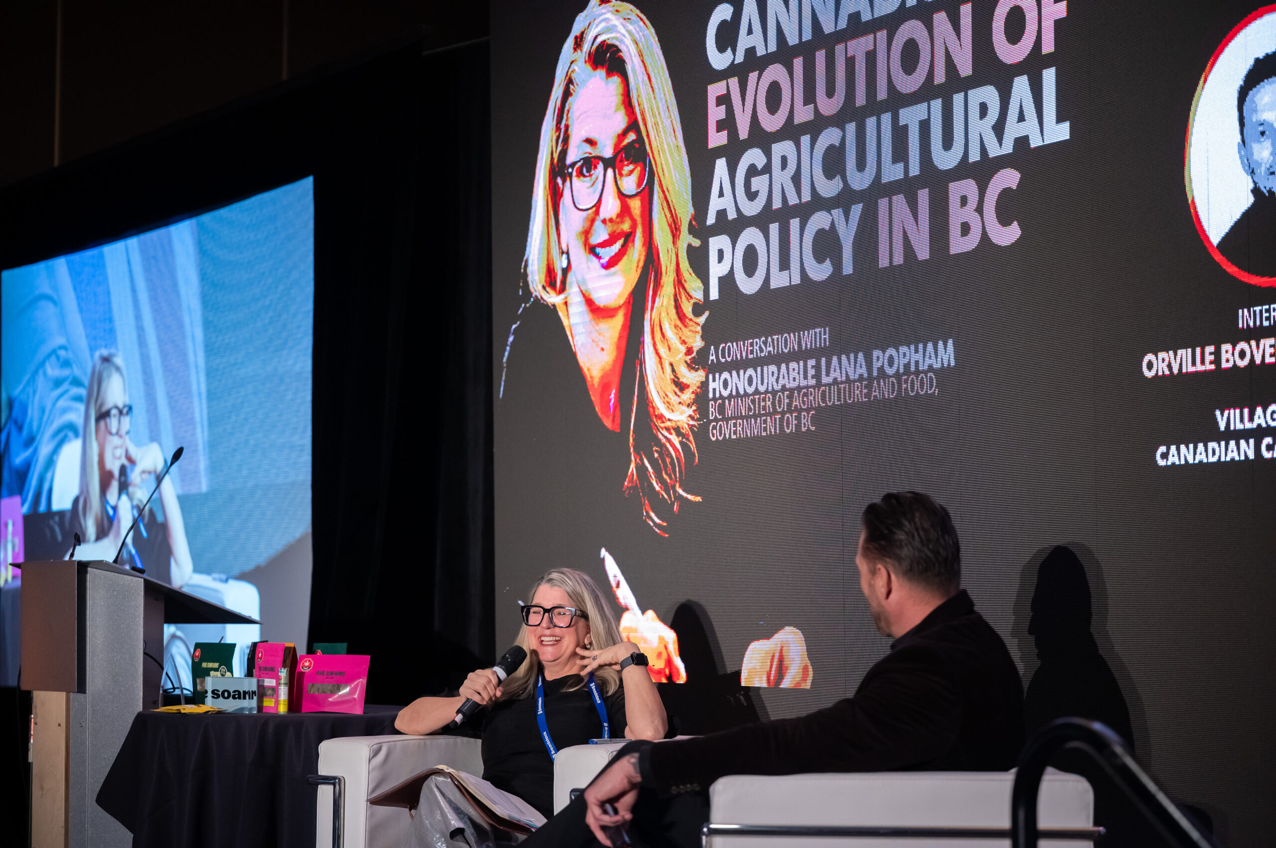 We then moved into a keynote fireside chat with Lana Popham, BC Minister of Agriculture and Food, joined by Orville Bovenschen, exploring the evolution of cannabis within BC’s agricultural framework and what it means for producers and long-term sector growth.