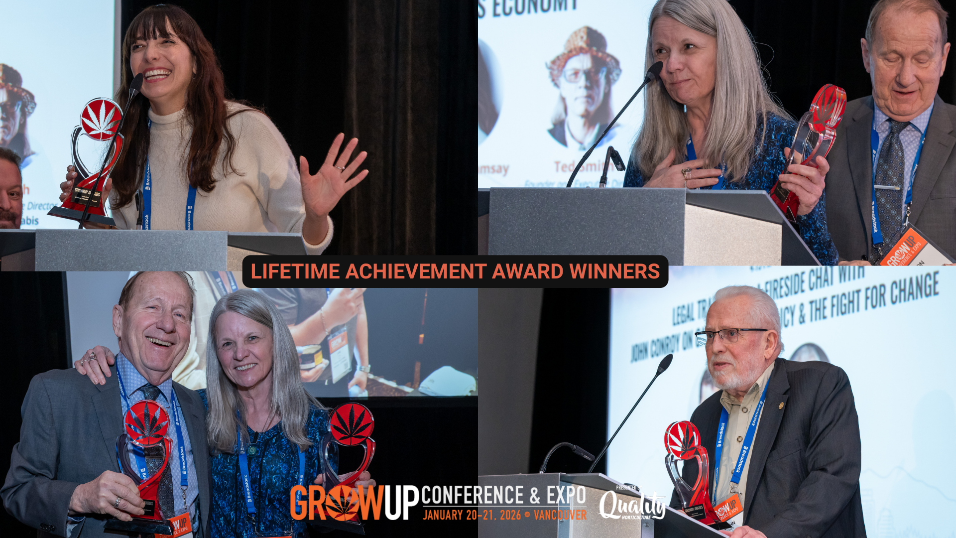 Vancouver, BC — January 2026 — Grow Up Vancouver 2026 proudly recognized four outstanding leaders with Lifetime Achievement Awards, honouring decades of impact across cannabis advocacy, law, media, retail, and culture in Canada.