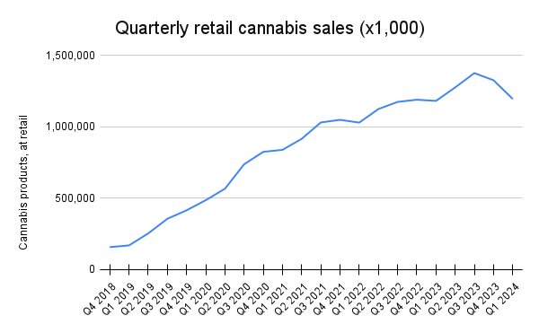 The most recent monthly retail cannabis sales figures show sales rebounded in February and April after dropping to their lowest in nearly a year in January 2024.
