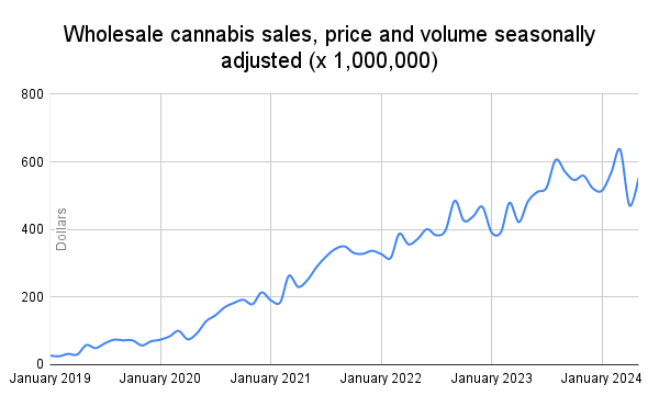 Wholesale cannabis sales increased to $553 million in May after a steep decline in April, following record-high rates in March 2024.